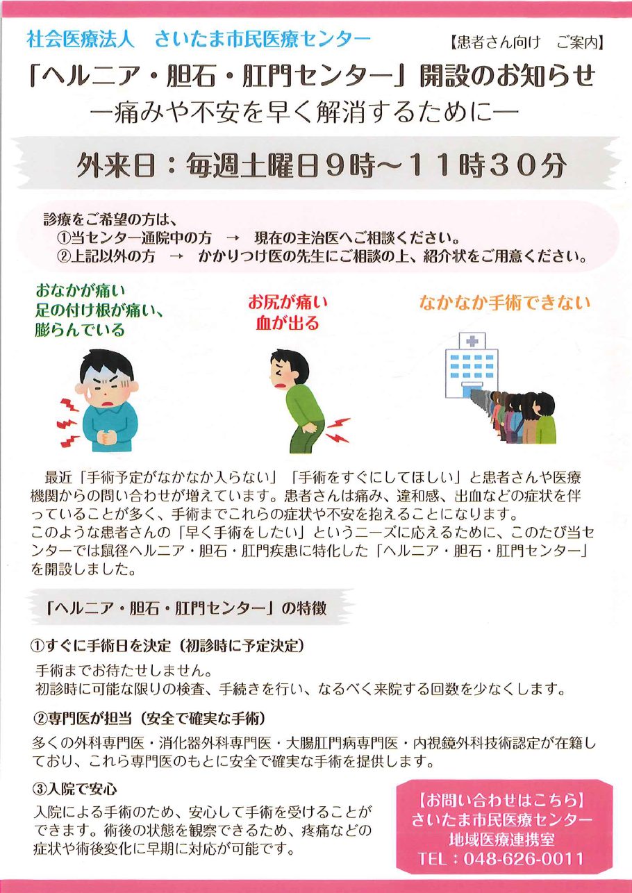 「ヘルニア・胆石・肛門センター」開設のお知らせ